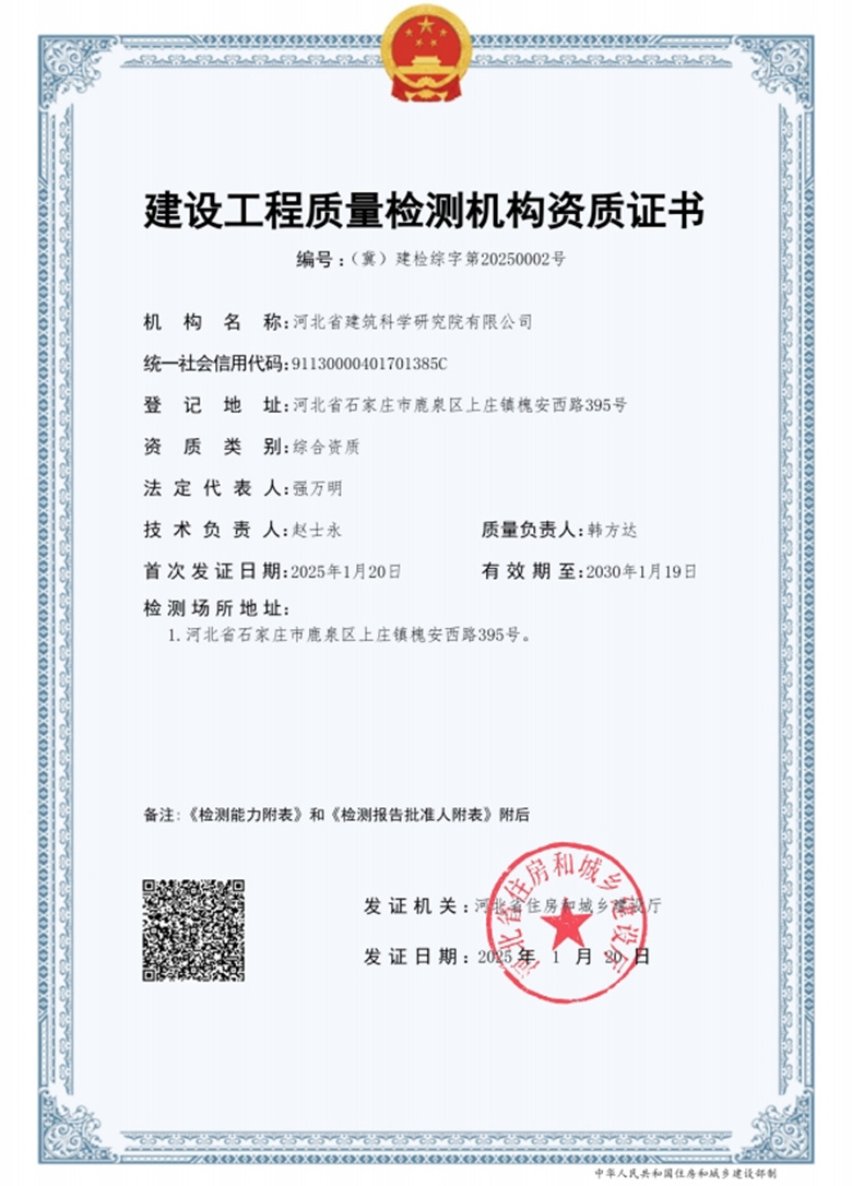 河北省建筑科學(xué)研究院有限公司資質(zhì)證書(shū)